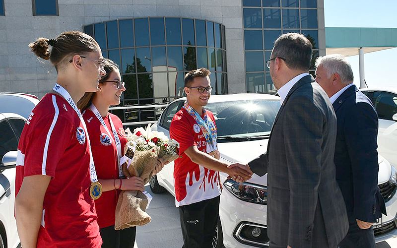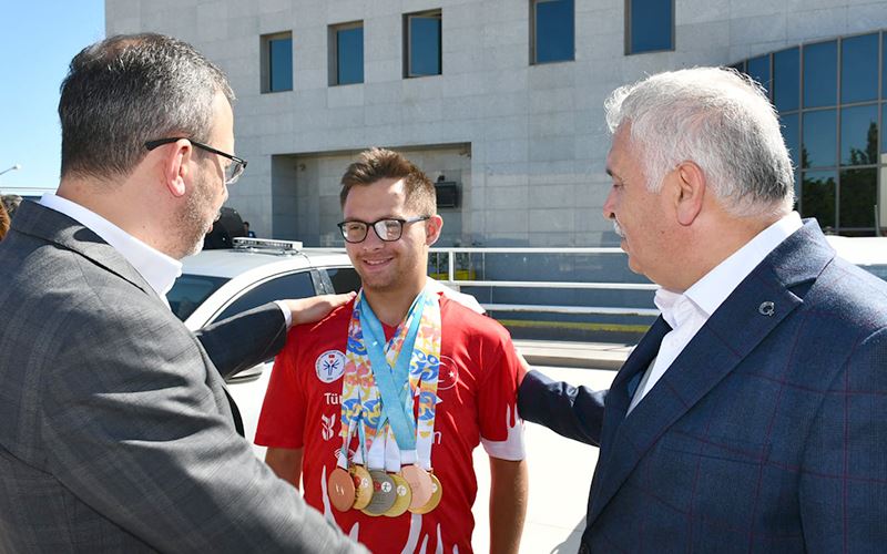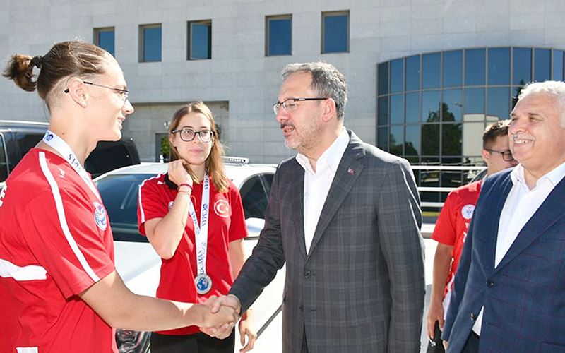 Karşılamada dünya şampiyonluğu olan Down Atletizm Milli Takım Sporcusu Emirhan Akçakoca, Su Altı Sporları Serbest Dalış branşında dünya 2. olan sporcu Ceylin İpteş ve Su Altı Sporları Serbest Dalış branşında dünya 1. olan sporcu Hamza Varol da yer aldı. Bakan Kasapoğlu kendisini çiçeklerle karşılayan sporcularla tanışarak bir süre sohbet etti. Bakan Kasapoğlu yaptığı konuşmada “başarılı sporcularımıza Bakanlık olarak gereken her türlü desteği veriyoruz.” dedi.