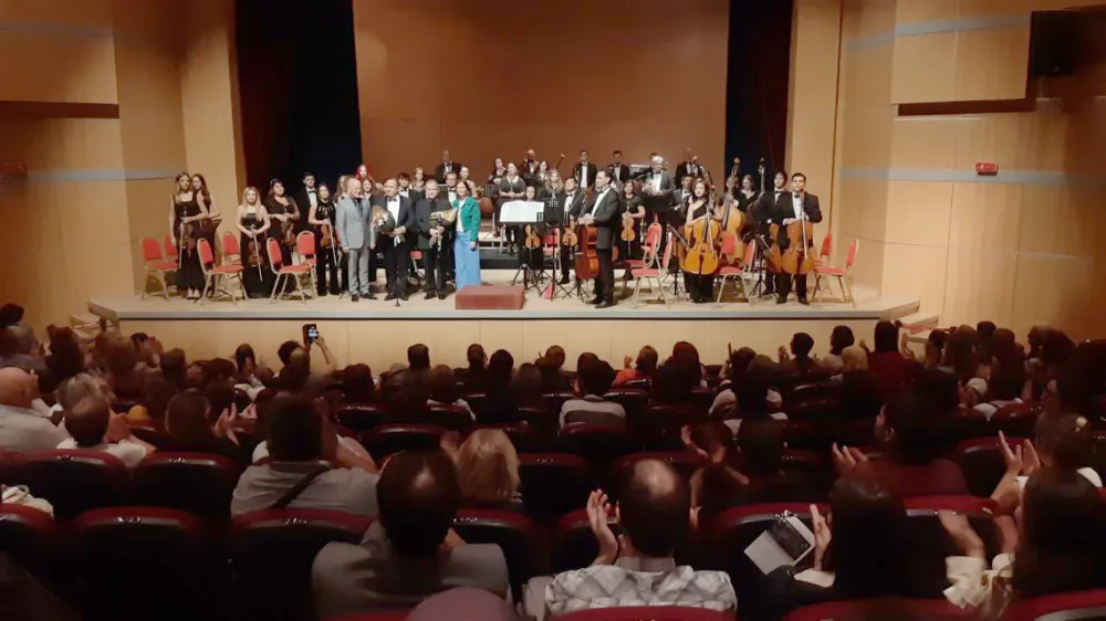 Zafer’in konuşmasının ardından orkestra ve Karabacak’a çiçek takdim edildi.