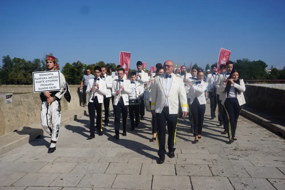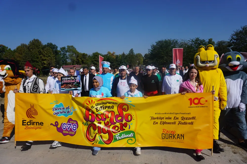 Edirne’de bu yıl 11’incisi düzenlenen ’Edirne’ye gel ciğerimi ye’ temalı Edirne Bando ve Ciğer Festivali’nin ikinci günü yerli ve yabancı bando ekiplerinin tarihi Meriç Köprüsü üzerinden kortej yürüyüşü yapmasıyla devam etti. 2018’de Guinness Rekorlar Kitabı’na giren büyük ciğer tavasının önüne gelen bando ekipleri, mini konserleriyle vatandaşlara keyifli anlar yaşattı.