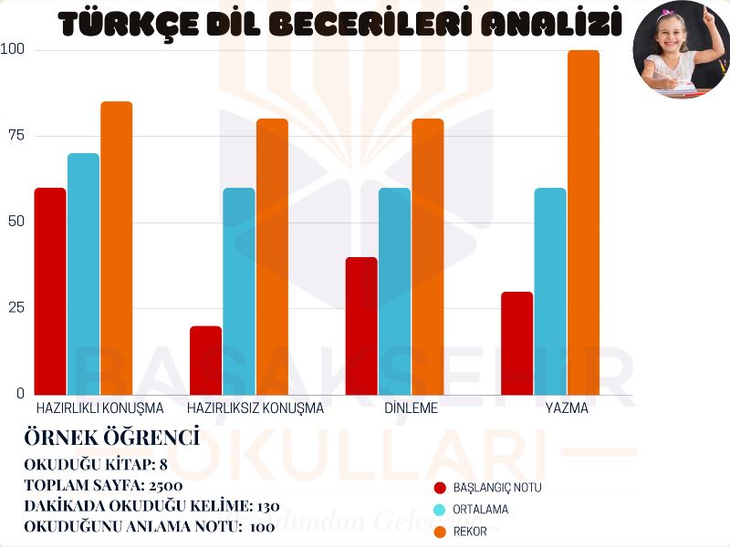 Başakşehir Okulları Türkçe öğretmenleri, ülkede örneği olmayan bir çalışma yaparak Türkçe dersinde ‘Başakşehir Akımı’nı oluşturdular. Sınava odaklı sistem sebebiyle Türkçenin alt becerilerinden sadece okuma ve dil bilgisi üzerinde durulduğunu ifade eden Türkçe öğretmenleri; insanın hayatında aslında son derece önemli olan konuşma, dinleme, yazma ve çağımızın ihtiyacı araştırma becerilerine de önem verilmesi gerektiğini belirttiler. Bu kapsamda derslerini yeniden yapılandıran öğretmenler; öğrencilerin konuşma, dinleme, okuma, yazma alanlarındaki yeteneklerini ölçerek bunu detaylı bir karneye dönüştürdüler.