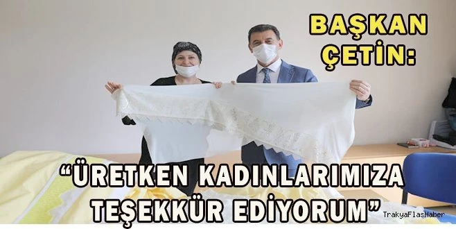 Kurslara olan ilgilerinden dolayı kursiyerlere teşekkür eden Başkan Çetin, ?Birbirinden farklı alanlarda düzenlediğimiz kurslarımız ile kadınlarımız hem sosyalleşiyor hem de el emeği göz nuru ürünler ortaya çıkarıyorlar. Bugün de on parmağında on marifet olan Karaağaç?taki kursiyerlerimiz ile bir araya gelerek sohbet ettik. Hem onların taleplerini dinledik, hem de kentimizde sürdürdüğümüz çalışmalar üzerine konuştuk. Çalışkan ve üretken kadınlarımıza emeklerinden ve nefis ikramlarından dolayı teşekkür ediyorum. Emek veren kurs hocalarımıza da şükranlarımı sunuyor, kursiyerlerimize başarılar diliyorum.? dedi.
