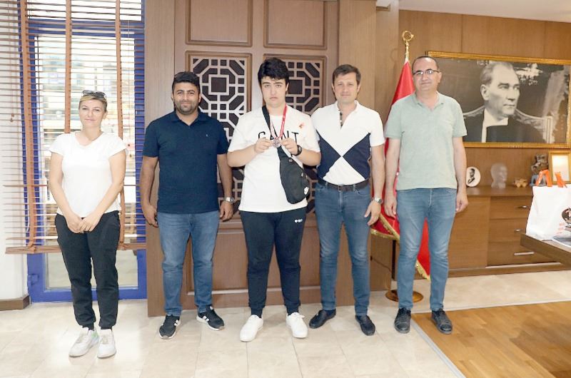 26 Mayıs – 1 Haziran tarihleri arasında Mersin’de düzenlenen Okul Sporları 2021-2022 sezonu Özel Sporcular Masa Tenisi Türkiye Şampiyonası’nda gümüş madalya kazanan Şehit Muharrem Yanal Özel Eğitim Meslek Okulu Öğrencisi Can Ergin, beraberindeki Okul Müdürü Mustafa Murat Sütçü, Müdür Yardımcısı Ferhat Başıbüyük ve Beden Eğitimi Öğretmeni Esennur Bıyıkoğlu ile birlikte Belediye Başkanı Vahap Akay’ı ziyaret etti. Can Ergin’in ilk kez bir turnuvada mücadele ettiğine dikkat çeken Okul Müdürü Mustafa Murat Sütçü, “Can, toplamda 118 sporcunun katıldığı turnuvada, büyük bir başarı göstererek gümüş madalya kazandı” dedi.