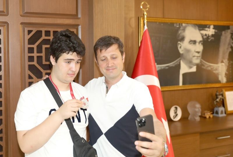 Okul Sporları 2021-2022 sezonu Özel Sporcular Masa Tenisi Türkiye Şampiyonası’nda Türkiye 2’ncisi olan Can Ergin, Belediye Başkanı Vahap Akay’ı ziyaret etti.