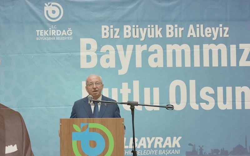 Tekirdağ Büyükşehir Belediyesi Yeni Hizmet Binasında gerçekleştirilen bayramlaşma töreninde bir konuşma yapan Başkan Albayrak, "Biz Tekirdağ Büyükşehir Belediyesi olarak büyük, mutlu bir aileyiz. Zaman kavramı olmadan Tekirdağ için büyük bir özveri ile çalışıyoruz. Bu anlamda tüm çalışanlarıma gösterdikleri fedakarlık için teşekkür ediyorum. Ama aynı heyecan, istek, azim ve kararlılıkla bundan sonra da çalışmaya, Tekirdağ'a hizmet etmeye devam edeceğiz. Tüm çalışanlarımızın Kurban Bayramını kutluyor, aileniz ve sevdiklerinizle birlikte mutlu ve huzurlu bir bayram geçirmenizi diliyorum" dedi.