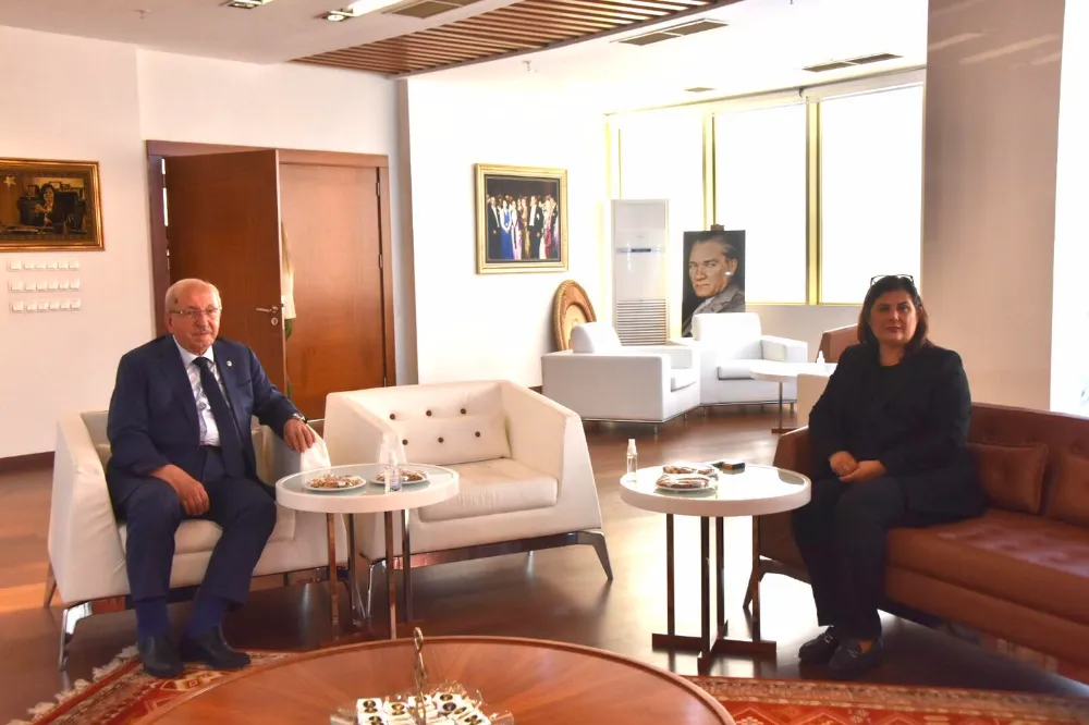 Tekirdağ Büyükşehir Belediye Başkanı Kadir Albayrak, büyükşehir belediyesi temasları çerçevesinde Ege Bölgesi’ndeki ikinci ziyaretini Efeler Diyarı Aydın Büyükşehir Belediyesi’ne yaptı. Aydın Büyükşehir Belediye Başkanı Özlem Çerçioğlu’nu makamında ziyaret eden Başkan Albayrak, “9,5 yıldır birlikte yol almaktan onur duyduğum çok kıymetli kardeşim, nam-ı diğer “Topuklu Efe” Aydın Büyükşehir Belediye Başkanı Sayın Özlem Çerçioğlu’nun misafiri olduk. Üretken ve yenilikçi belediyecilik anlayışı çerçevesinde iş birliği programları geliştirmek adına bilgi alışverişinde bulunduk. Değerli Başkanıma Tekirdağlı hemşerilerimin de selamlarını ilettim. Kendisinin de Tekirdağ’a çok çok selamları var. Misafirperverliği ve ilgisi için Özlem Çerçioğlu başkanıma çok teşekkür ediyor, görevinde kolaylık ve başarılar diliyorum” diye konuştu.