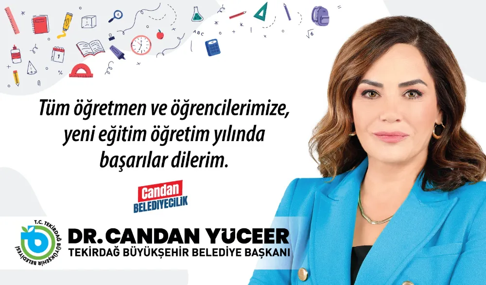 Tekirdağ Büyükşehir Belediye Başkanı Dr. Candan Yüceer, 2024-2025 eğitim-öğretim yılı açılışı dolayısıyla bir mesaj yayımladı. Candan Başkan, mesajında şunları kaydetti: