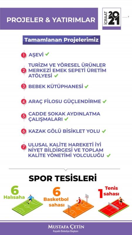 Üstyapı ve altyapı, park ve sosyal tesisler, çevre ve sıfır atık sosyal hizmetler, proje ve yatırımlar, kültür, sanat ve spor etkinlikleri olmak üzere 6 başlıkta değerlendirmelerde bulunan Kapaklı Belediye Başkanı Mustafa Çetin, “2021 icraat dolu bir yıl oldu. Yeni yıl da hizmet maratonumuza hız kesmeden devam edeceğiz.” dedi.
