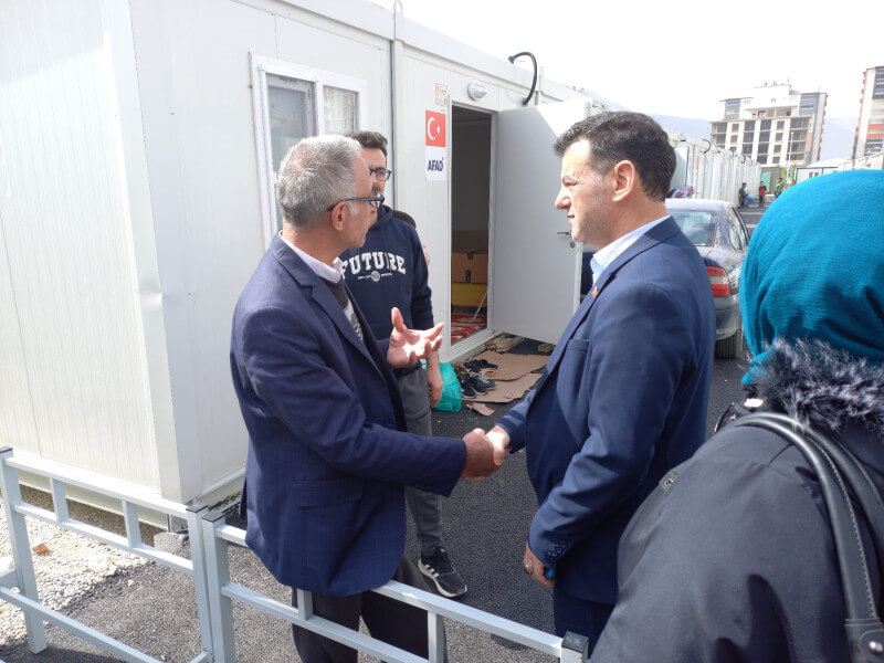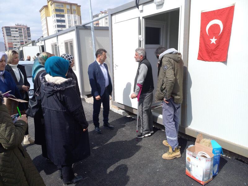 Kahramanmaraş’ın Elbistan ilçesinde çalışmalarını sürdüren Kapaklı Belediye Başkanı Mustafa Çetin, AK Parti Tekirdağ İl Kadın Kolları Başkanı Nihal Erdoğan Köşdere, Kapaklı İlçe Kadın Kolları Başkanı Nuray Yaman ve teşkilat mensupları ile Elbistan Yetim Koordinasyon Merkezi’ni ziyaret etti. Burada konaklayan afetzede vatandaşlarla bir araya gelen Başkan Çetin, ardından konteyner kentleri ziyaret etti.