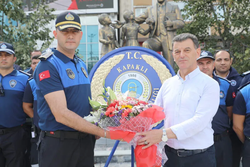 Zabıta Teşkilatı'nın 197’inci kuruluş yıl dönümü ve 1-7 Eylül Zabıta Haftası dolayısıyla çelenk sunma töreni düzenlendi. Törene Kapaklı Belediye Başkanı Mustafa Çetin, Kapaklı Belediyesi Zabıta Müdürü Mustafa Güler ve Zabıta personeli katıldı.