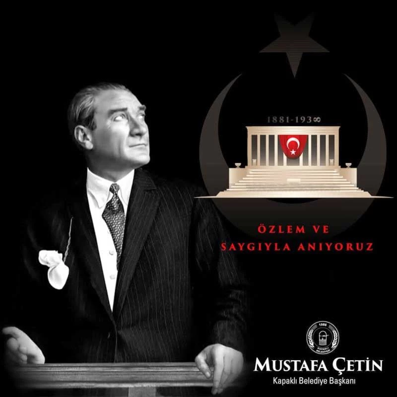 Kapaklı Belediye Başkanı Mustafa Çetin, Türkiye Cumhuriyeti'nin kurucusu Gazi Mustafa Kemal Atatürk’ün ebediyete irtihalinin 84. yıl dönümü dolayısıyla bir mesaj yayımladı.