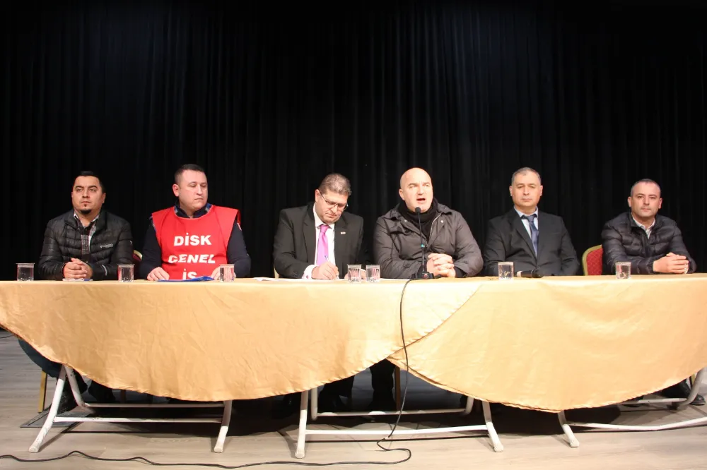 “Değişen ve gelişen koşullar emekçi kardeşlerim için yaşam koşullarını her geçen gün daha da zora sokmaktadır. Hissedilen zorluk düzeyi bizlere yansıtılan, ölçülenle başa baş gitmemektedir. Hepimiz biliyoruz ki enflasyonun tahrip edici tesiri kamuoyuyla paylaşılanın çok daha dışında ve ötesinde bir hal almıştır. Bilhassa, temel yaşam ihtiyaçlarının karşı karşıya kaldığı enflasyonist ortam işçi sınıfını giderek daha ağırlaşan hatta hayatlarını soluksuz bırakan bir durumda yaşamaya zorlamaktadır. Hal böyle olunca bizim Sayın Cumhurbaşkanımızın memur kısmına öngördüğü zamla müsemma onun 1 puan üzerinde bir zamla işçi sınıfımızı, saygıdeğer mesai arkadaşlarımızı, emekçimizi ellerindeki nasırla alnındaki terle hayatını kazanarak evine helal lokma götüren saygıdeğer kardeşlerimi ancak bir parça olsun muhafaza ettirmek durumuyla karşı karşıyayım. Dolayısıyla çiçekli davul zurnalı nümayişlerin yeri değil. Ancak sendikacı arkadaşlarım Devrimci İş Sendikaları Konfederasyonu’nun soylu temsilcileri işçi sınıfının hak arayışları da biliyorlar ki gelinen durumda bir dayanışmayı karşılıklı sergilemek zorundayız. Sizlere reva görülen, verilen zam kesinlikle yaşam koşullarında sizleri insanca yaşatacak bir zam değildir. Hayatını işçi sınıfının mücadelesine adamış, işçi sınıfının her bireyiyle kendini eşit gören eşitlik mücadelesini yaşam biçimi haline getirmiş bir kardeşiniz, abiniz arkadaşınız olarak konuşuyorum. Yapılanlar son derece kifayetsizdir. Ancak eldeki imkanlar nispetinde kurumun bekasını sürdürmek gayretiyle ve sendika temsilcilerimizin de içlerine biraz olsun sinebilecek sizleri de geleceğe hiç değilse umudu aktarır mahiyette muhafaza edecek bir anlaşmayı bugün böylece imzalıyor olmaktan büyük memnuniyet duyuyorum. Hayırlı, uğurlu olsun.”