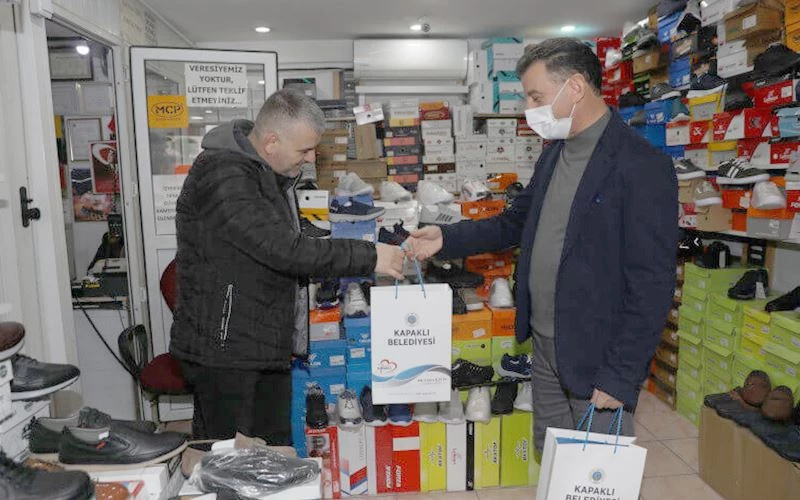 Kapaklı Belediye Başkanı Mustafa Çetin, esnaf ziyaretinde bulunarak, yeni yıl dileklerini paylaştı. Esnafa bol ve bereketli kazançlar dileyen Başkan Çetin, çeşitli ürünlerin ve 2022 yılı takviminin yer aldığı hediye çantalarını takdim etti.