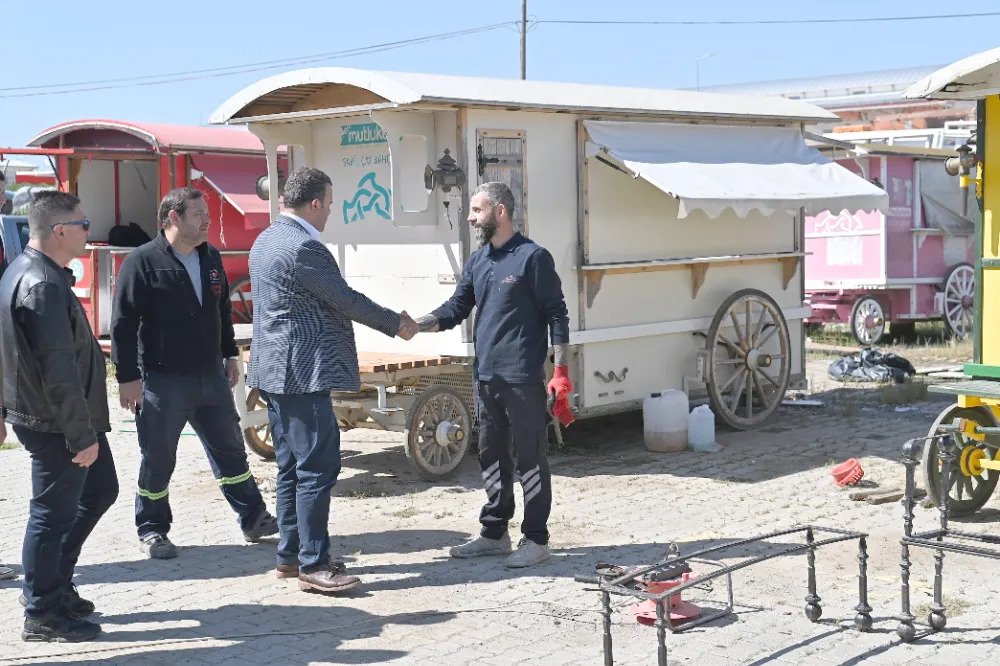 Yaklaşan yaz mevsimi ile birlikte hareketlenmeye başlayacak olan Süleymanpaşa’da ihtiyaç duyulan kent mobilyalarının üretimi, bakım ve onarımlarının yapıldığı atölyelerde incelemelerde bulunan Belediye Başkanı Volkan Nallar, üretimi ve tamiri yapılan kamelyalar, seyyar araçlar ve diğer kent mobilyaları ile ilgili bilgi alarak personele işlerinde kolaylıklar diledi.