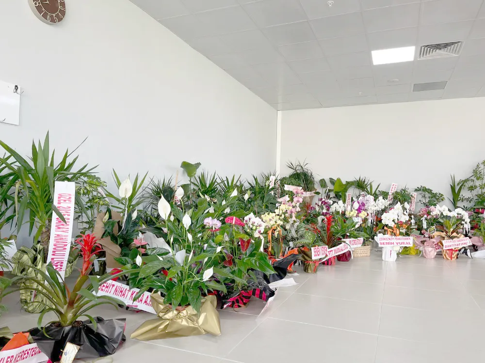 Seçimi kazanması üzerine tebrik için gönderilen çiçekleri odasında toplayan Saray Belediye Başkanı Abdül Taşyasan, ilerleyen günlerde engelli çocuklar yararına açık arttırma düzenleyecek.