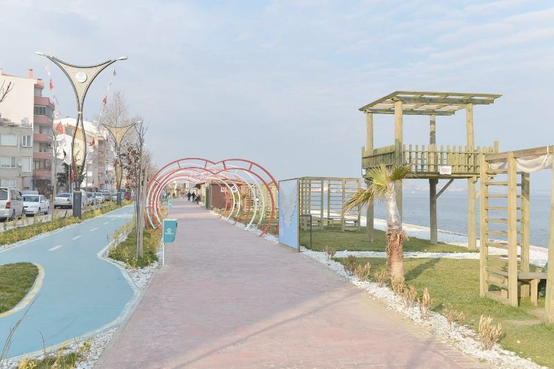Cumhuriyet Mahallesi Alkaya Mevkii’nden başlayarak Değirmenaltı Mahallesi’ne kadar uzanan 1,7 kilometrelik sahil yolunun yapım çalışmaları tamamlanma aşamasına gelirken, ilkbaharın gelişi ile birlikte büyük bir canlılığa kavuşması beklenen Alkaya Sahili’nde palmiyelerin bakımı yapılıyor, çiçeklendirme çalışmaları için tarhlar hazırlanıyor, yürüyüş ve bisiklet parkurları kullanıma hazır hale getiriliyor. Altınova Mahallesi’nde geçtiğimiz yıl tamamlanarak hizmete kazandırılan 1,4 km uzunluğundaki sahil şeridinde de çiçeklendirme hazırlıkları, bakım ve onarım çalışmaları sürüyor.