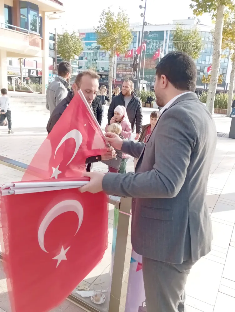 Türkiye Gençlik Vakfı (TÜGVA) Çerkezköy Temsilcisi Murat Karakan, vatandaşlara ve esnafa şehitlerimiz için Türk Bayrağı dağıttı. Karakan, Çerkezköy’de salı günü öğle namazı sonrası Belediye Meydanı’nda başlayıp Şehitliğe kadar sürecek olan “Şehitlere Saygı Yürüyüşü” gerçekleştireceklerini söyledi.