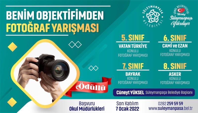 Süleymanpaşa Belediyesi, ilkokul ve ortaokul öğrencilerine yönelik resim ve fotoğraf yarışması düzenliyor.