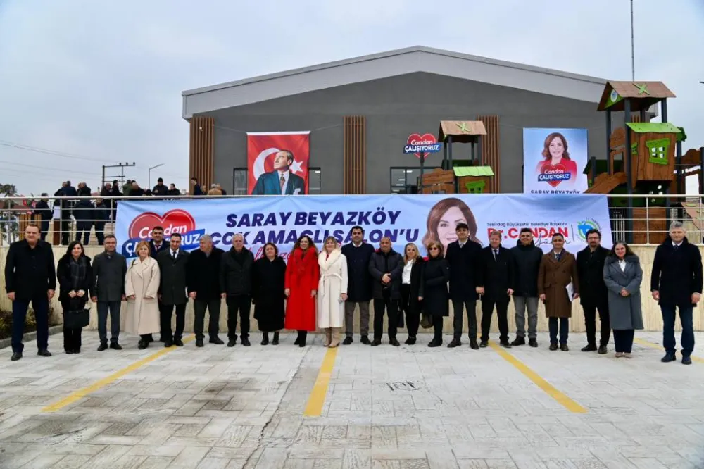 Başkan Dr. Candan Yüceer sözlerine “Burada sadece düğünler ve nişanlar olmayacak elbette. Burası, tıpkı bugün olduğu gibi, birlik ve beraberlik içinde buluşacağımız, sosyal etkinlikler düzenleyebileceğimiz, toplantılar yapabileceğimiz, yeni beceriler kazanabileceğimiz bir merkez olacak. Eminim ki burası mutluluğun, birlik ve dayanışmanın simgesi haline gelecek. Burası bizim için sadece bir mekan değil, Beyazköy’ün birlik ve beraberliğini temsil eden bir yapı olacak. Biz yola çıkarken "Büyük Ailem Tekirdağ" dedik. Bu büyük aileye gözümüz gibi bakmalıyız. Nerede olursa olsun, Beyazköy’de, Saray’ın merkezinde, Süleymanpaşa’da, Çerkezköy’de, Ergene’de, hiçbir ayrım gözetmeden tüm vatandaşlarımıza dokunmalıyız. Çocuklardan gençlere, kadınlardan büyüklerimize kadar herkesin yanında olmalıyız. Kırsaldan merkeze kadar Tekirdağ’ı her alanda güçlendiren projeleri hayata geçirme sözü verdik. İşte bugün Beyazköy’de hayata geçirdiğimiz düğün salonu da bu anlayışın bir ürünü. Şubat ayı biliyorsunuz en kısa ay. Ama biz bu kısa aya tam dokuz açılış sığdırdık. Sığdıramadıklarımızı da önümüzdeki günlerde gerçekleştireceğiz. Saray Kapalı Spor Salonu’muzun açılışı var, ardından Şarköy Kreşi’nin açılışını yapacağız. Allah nasip ederse önümüzdeki aylarda Şarköy İtfaiye İstasyonu’nun temelini atacağız. Ayrıca biliyorsunuz, 11 ilçeye 11 kreş sözü verdik. Tıpkı bu düğün salonları gibi, taziye evleri de bizim, cenazeler de bizim. Saray’dan ve diğer ilçelerden gelen taziye evi talepleri oldu. Düğün salonu talepleri oldu. Bu talepleri de hızla karşılamak için çalışmalarımızı sürdürüyoruz. Az önce Ahimehmet Mahallesi’nden geldik. Orada Güneş Enerjisi Santrali açılışını gerçekleştirdik. Bu proje hem enerji maliyetimizi düşürecek hem de çevremizi koruyacak. Önümüzde iki büyük projemiz daha var, onların da temelini atacağız. Bu yılın sonunda Tekirdağ Büyükşehir Belediyesi, kendi enerjisini güneş ve rüzgâr enerjisinden üreten bir büyükşehir olacak.”