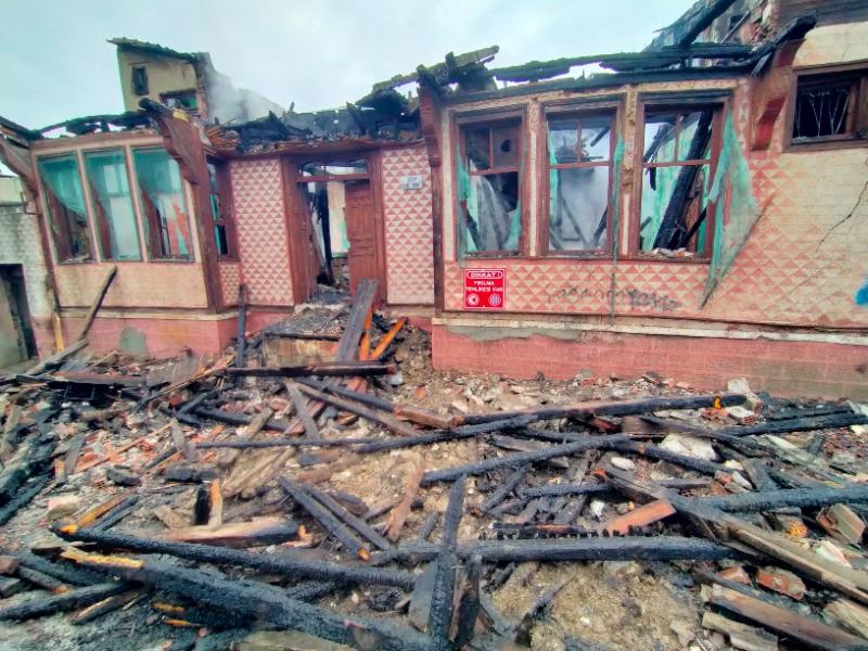 İki katlı ahşap binanın küle döndüğü yangının boyutu günün ilk ışıklarında ortaya çıktı. Kullanılamaz hale gelen binanın birçok bölümünün çöktüğü görüntülere yansıdı. İtfaiye ekipleri, 6 saattir soğutma çalışmalarını sürdürüyor. Polis ekipleri yangının çıkış sebebiyle ilgili incelemelerini sürdürüyor.