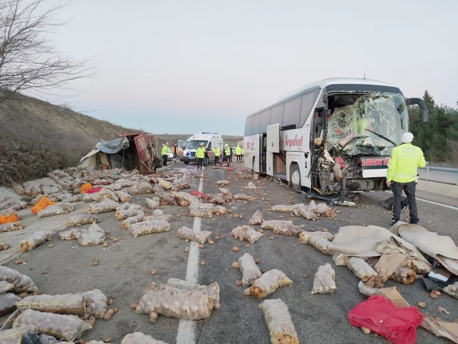 Dün akşam saatlerinde Tekirdağ-Malkara yolunun Yenice mevkiinde meydana gelen kazada, İstanbul’dan aldığı yolcuları Şarköy ilçesine götüren Şarköy Seyahat firmasına ait H.Y. idaresindeki 59 ACB 822 plakalı otobüs ile Seyfi Özcan idaresindeki patates yüklü 34 GTH 05 plakalı kamyon çarpışmıştı.