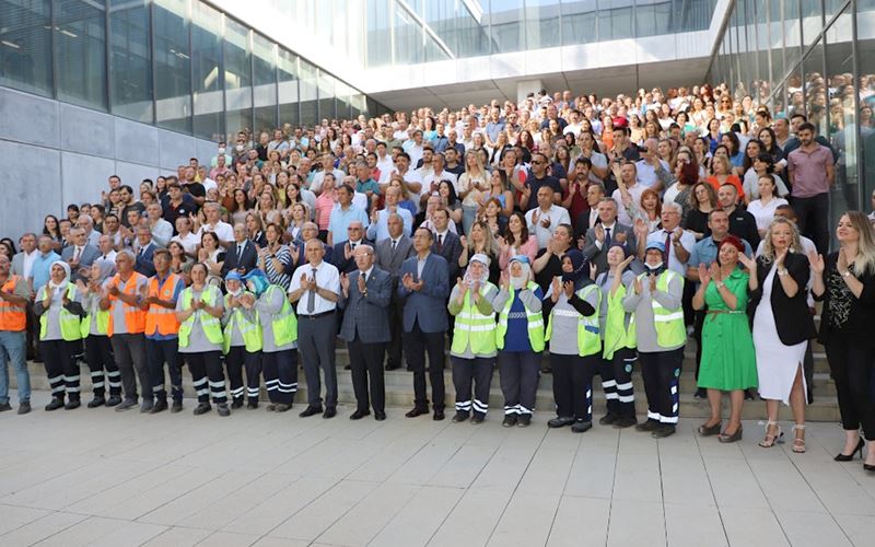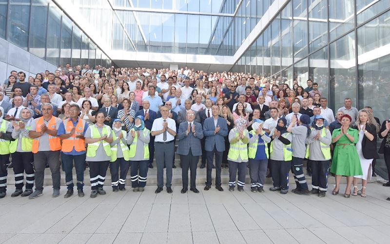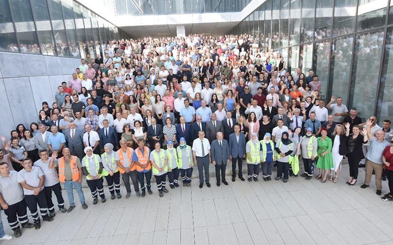 Tekirdağ Büyükşehir Belediyesi Yeni Hizmet Binasında personelle bir araya gelen Tekirdağ Büyükşehir Belediye Başkanı Kadir Albayrak burada yaptığı konuşmada, Büyükşehir Belediyesi ve TESKİ’nin büyük bir aile olduğunu belirterek, “Kurulduğumuz 2014 yılından bu yana tüm personellerimiz ile Tekirdağ için tüm hızımızla çalışıyoruz. Tekirdağ’ın vizyonları arasında bulunan birçok alanda diğer büyükşehir belediyelerine örnek olacak projeler hayat geçirdik. Şimdi hepimiz için yeni bir dönem başlıyor. Ağustos ayında resmi açılışımızı yapacağımız Yeni Hizmet Binamızda ilk mesai günümüzde vatandaşlarımıza hizmet vermeye başlamış bulunuyoruz. Tekirdağ Büyükşehir Belediyesi olarak bu bina ile kurumsallaşmamızı tamamladık. Tüm Tekirdağ halkına hayırlı olsun” dedi. Başkan Kadir Albayrak konuşmasının ardından Tekirdağ Büyükşehir Belediyesi ve TESKİ daire başkanları, birim amirleri ve personelleri ile büyük aile fotoğrafı çektirdi.