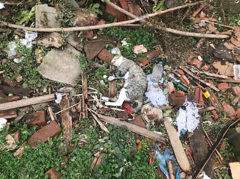 Boş bir arazide çok sayıda kedinin öldüğünü gören vatandaşlar ihbarda bulundu. Duruma tepki gösteren vatandaşlar, ölen kedileri telefonlarıyla kayda aldı. İhbar üzerine olay yerine gelen polis ekipleri kedilerin ölüm sebebini açıklığa kavuşturmak için incelemelerde bulundu. Kedilerin ölüm sebebinin bulunması için araştırmalar devam ediyor.