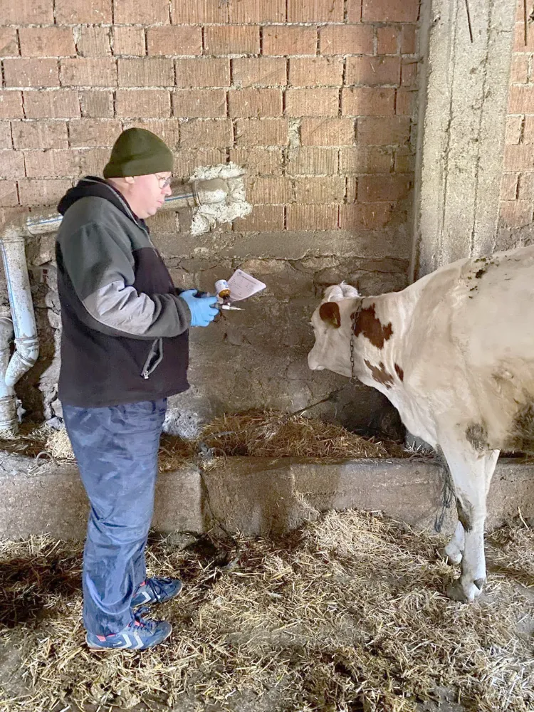 Kırklareli’nin Lüleburgaz ilçesine bağlı Kayabeyli köyünde İlçe Tarım ve Orman Müdürlüğünce bruselloz hastalığına karşı aşılamaları sürüyor.