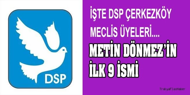 Çerkezköy`de Belediye Meclis Listeleri bir bir düşüyor. İşte Metin Dönmez`in Başkan adayı olduğu DSP Çerkezköy Belediye Meclis Üyesi Aday Listesi`nin ilk 9`u