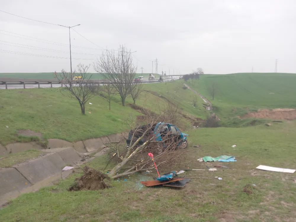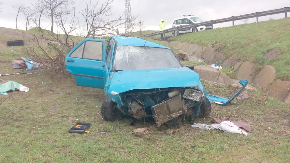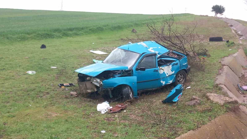 Tekirdağ Çorlu’da şarampole uçan araç, ağaca çarparak durabildi. Hurdaya dönen araçta karı koca yaralandı.
