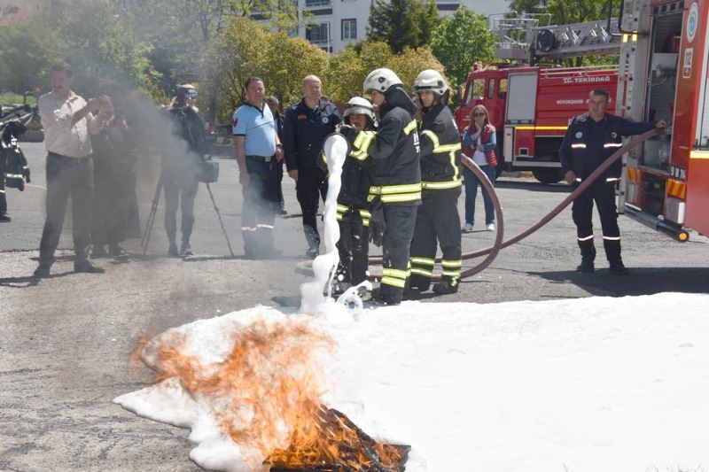 Çorlu İtfaiyesinde görev yapan itfaiye erlerinden yangına müdahale eğitimi alan gençler, itfaiye kıyafeti giyerek temsili ardından temsili yangın söndürmeye katıldı. İtfaiye hortumu ile yangına su sıktı. Büyükşehir Belediyesi İtfaiye Dairesi Başkanı Cengiz Çelik ve Çorlu Kent Konseyi Engelli Meclis Başkanı Yasemin Ayyüksel’in de katıldığı etkinlikte engelli gençler itfaiyeci olmanın keyfini yaşadı.
