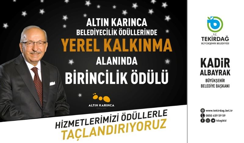 Marmara Belediyeler Birliği tarafından insana ve doğaya duyarlı, yaşam kalitesi yüksek, sürdürülebilir şehir hayatına katkı sağlayacak iyi uygulama örneklerinin ödüllendirilmesi amacıyla gerçekleştirilen Altın Karınca Ödülleri’ne bu yıl Yerel Kalkınma alanında Arıcılığı Geliştirme ve Polinasyon Projesi ile Tekirdağ Büyükşehir Belediyesi layık görüldü.