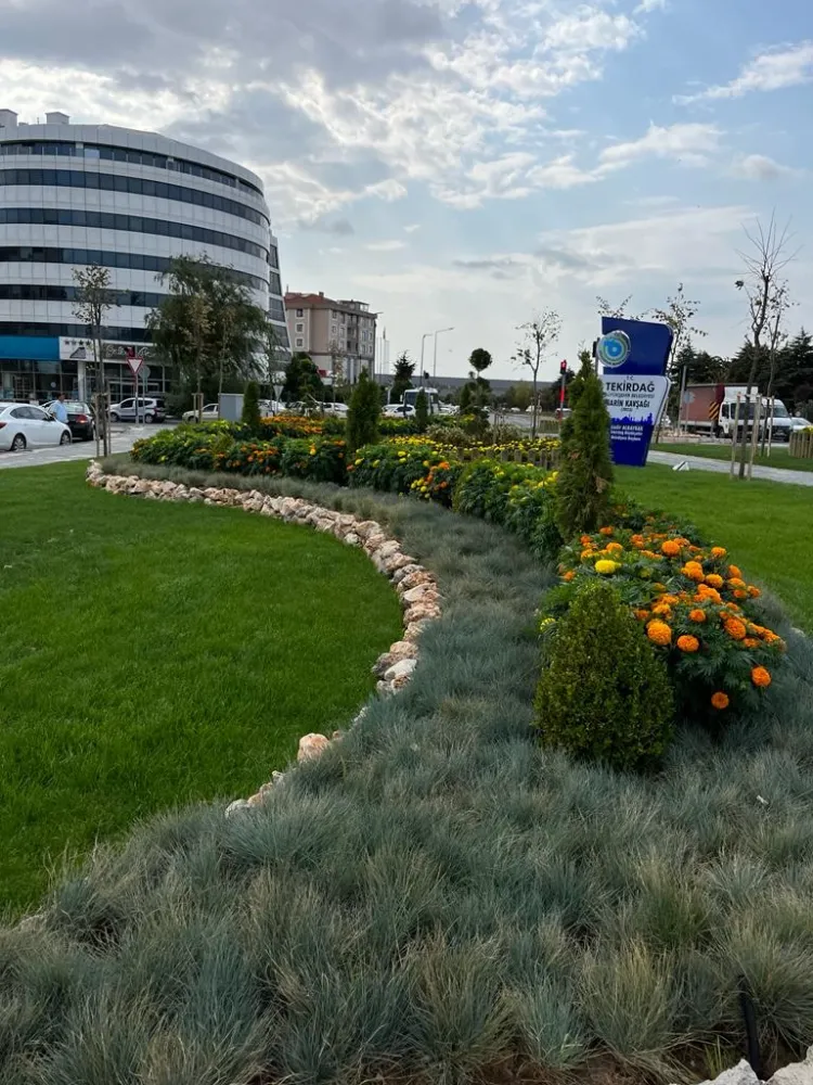 Büyükşehir Belediyesi Park ve Bahçeler Dairesi Başkanlığı ekiplerince il genelinde sürdürülen çalışmalar kapsamında Çerkezköy ilçesi Narin Kavşağı’nda 3 adet zeytin ağacı, 13 adet mavi ponpon servi, 8 adet yeşil spiral servi, 12 adet top süs iğdesi çalısı, 6 adet mazı, 7 adet top şimşir çalısı, 122 adet altuni taflan çalısı, 330 adet çalı şimşir, 8.400 adet mevsimlik çiçek, 14 adet ıhlamur ağacı, 840 adet ligustrum çalısı, 2.120 adet mavi çim dikimi yapıldı. Alanda 525 metrekare de çim ekimi yapıldı.