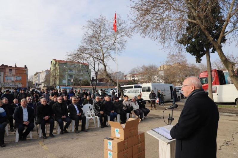 “Ülkemizdeki dolar kurunun ve enflasyonun aşırı yükselmesi ile beraberinde artan maliyet sonucunda, oluşan sıkıntılar arı yetiştiricilerimizi de etkilemiştir. Arıcıların bal üretimi yapılmayan belirli dönemlerde, kovanlarına ilave yem vermeleri gerekmektedir. Ancak şeker fiyatlarının son bir yılda 6 kat artmasından dolayı, üreticiler şekerden üretilen bu arı yemleri için çok ciddi maddi bedeller ödemek durumunda kalmaktadırlar. Bu nedenle kullanılması kaçınılmaz olan arı keklerini arıcılık işletmelerimize destek olarak dağıtıyoruz. Daha önce Saray, Kapaklı ve Çerkezköy ilçelerinde arıcılık faaliyetlerini yürüten üreticilerimize arı keki dağıtımı yapmıştık. Bugün ise burada Malkara-Süleymanpaşa Bal Üreticileri Birliği ve Tekirdağ İli Arı Yetiştiricileri Birliğine üye 116 kişiye 19.980 kg arı keki dağıtımı gerçekleştiriyoruz.
