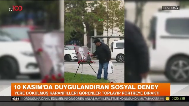11 ilçede farklı alanlara Atatürk portreleri ve yere dökülmüş kırmızı karanfiller bırakıldı. Kaydedildiklerinden habersiz Tekirdağlılar, yerdeki karanfilleri saygıyla alıp Atatürk portresine bıraktılar. Bazıları portreyi selamlarken, bazıları da fotoğraf çektirdi. Her yaştan vatandaşın içten tepkileriyle ortaya çıkan o duygusal anlar kayda alındı. Genç, yaşlı, kadın, erkek demeden herkesin gösterdiği saygı, Atatürk sevgisinin toplumsal hafızadaki yerini bir kez daha gözler önüne serdi.