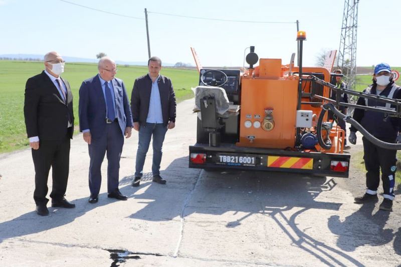 Tekirdağ Büyükşehir Belediyesi yol yapım çalışmalarında kullanılmak üzere çatlak dolgu makinesini araç filosuna kattı.