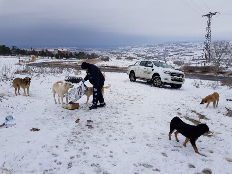 Tekirdağ Büyükşehir Belediyesi Sağlık İşleri Dairesi Başkanlığı Veteriner İşleri Şube Müdürlüğü ekipleri tarafından zorlu kış şartları ve kar yağışı dolayısıyla gıda bulmakta zorlanan sokak hayvanları için kentin farklı noktalarında kuru mama ile besleme yapıldı.