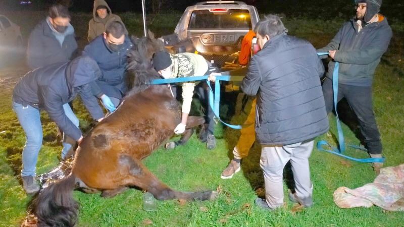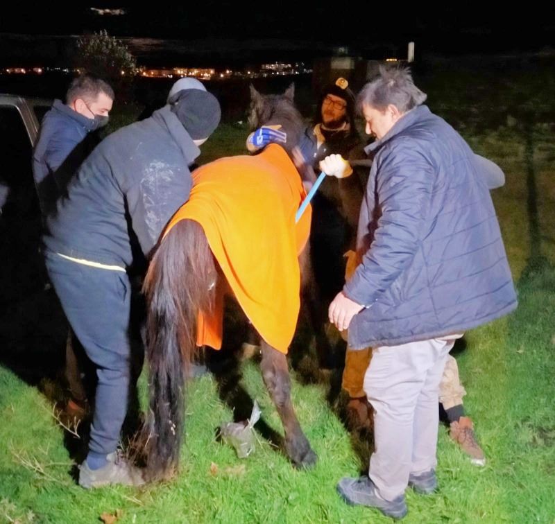 Veteriner hekim Uluç Erkan, can çekişen ata müdahale ederken sağduyu sahibi vatandaşlar da ata masaj yaparak ısınmasını sağladı. Yaklaşık 2 saat süren mücadelenin ardından at tedaviye olumlu cevap verdi. Kontrollü şekilde ayağı kaldırılan at, gerekli bakımı yapılmak üzere bölgedeki bir çiftliğe götürüldü. Atın ayağa kalkıp adım attığını gören vatandaşlar mutluluk yaşadı.