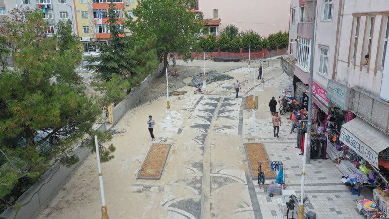 Dekoratif aydınlatma direklerinin montajının ve taş döşeme çalışmalarının sürdüğü cadde tamamlandığında yolu, kaldırımı, peyzaj ve aydınlatmasıyla ilçeye yakışır modern bir görünüme kavuşacak.