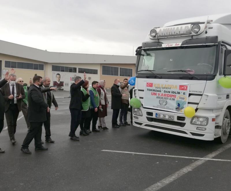 Konuşmaların ardından Çerkezköy Müftüsü İdris Çatmakaş’ın ettiği duanın ardından un dolu TIR, İdlip’e gitmek üzere hareket etti.