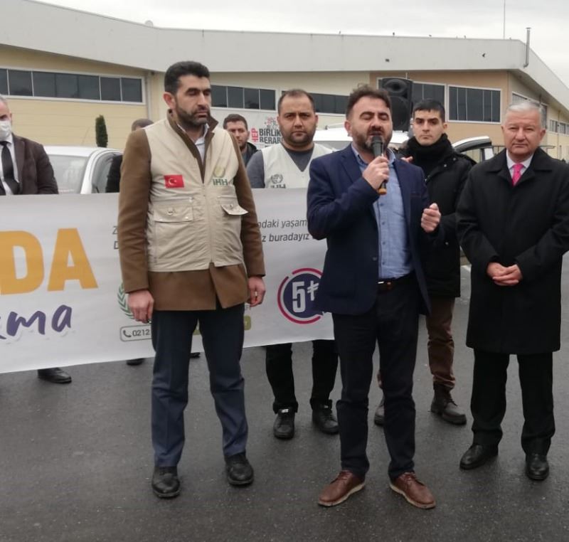 İHH İnsani Yardım Vakfı Çerkezköy Temsilciliği tarafından başlatılan, “Kış kapıda; mazlumları yalnız bırakma” kampanyası kapsamında toplanan 1 TIR dolusu un, Suriye’nin İdlip kentindeki kamplara ulaştırılmak üzere düzenlenen törenle Çerkezköy’den yola çıktı. İHH Çerkezköy Temsilcisi Ercan Bulduk, bağışçılara teşekkür ederken, “TIR’ı doldurmak isterken, fazlası geldi. Biz de ikinci TIR’ı gönderme kararı olduk. Bugün ikinci kampanyayı başlattığımızı duyurmak istiyorum.”dedi.