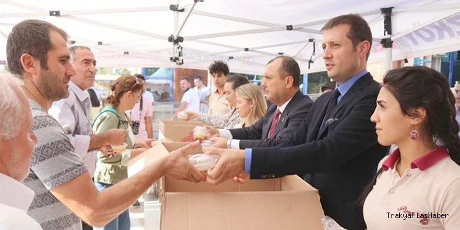Çerkezköy Belediyesi tarafından Muharrem ayının 10. gününe denk gelen Aşure Günü dolayısı ile her yıl olduğu gibi bu yıl da aşure ikramı yapıldı. Belediye Meydanı?ndaki aşure dağıtımını Belediye Başkanı Vahap Akay ile Tekirdağ Milletvekili İlhami Özcan Aygün birlikte yaptı.