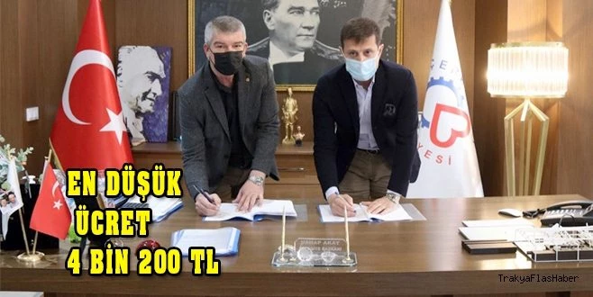 Çerkezköy Belediyesi ile DİSK Genel-İş Sendikası arasında, Çerkezköy Belediyesi Personel A.Ş. bünyesinde çalışan 337 belediye işçisini kapsayan Toplu İş Sözleşmesi imzalandı. Sendika temsilcileri ile yapılan toplu iş sözleşmesine göre Çerkezköy Belediyesi?nde en düşük işçi ücreti net 4 bin 200 TL olarak belirlendi.