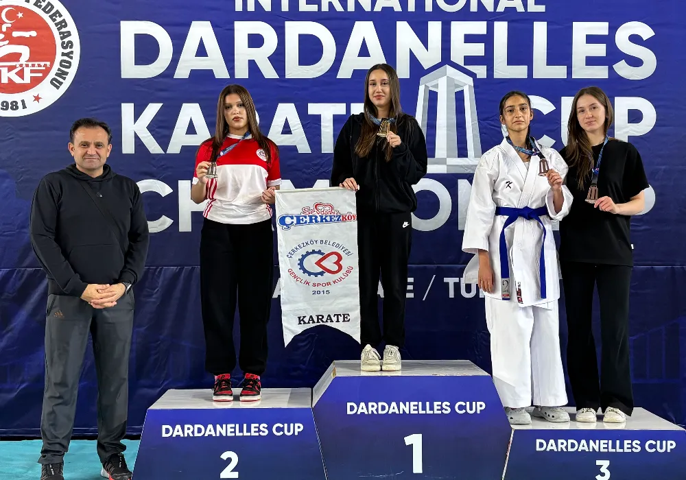 Çerkezköy Belediye Spor Kulübü Karate Takımı, Çanakkale’de düzenlenen Uluslararası Dardanel Cup Karate Şampiyonası’nda 2 altın ve 3 bronz madalya elde ederek ilçeye büyük gurur yaşattı.