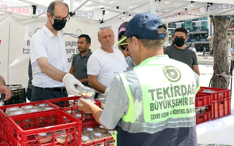 Çerkezköy Belediyesi Muharrem Ayı'nın 10'uncu günü nedeniyle vatandaşlara aşure dağıttı.