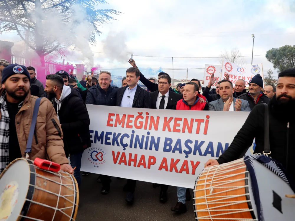 Çerkezköy Atatürk Kültür Merkezi’nde gerçekleştirilen toplantıya Çerkezköy Belediye Başkanı Vahap Akay, Belediye Başkan Yardımcısı Enver Bayram, DİSK Tekirdağ Şube Başkanı Ahmet Işık, Çerkezköy Belediyesi Personel A.Ş. Müdürü Birol Öztürk, DİSK'e üye Çerkezköy Belediyesi Personel A.Ş. İşyeri Temsilcisi Nazif Atik ile işçiler katıldı.