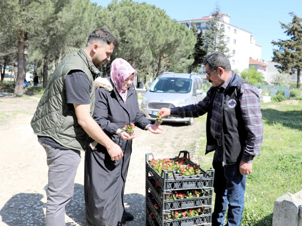 Vatandaşların Çerkezköy merkezinde bulunan İstasyon, Bahçeli, Türbedere ve Yeni İlçe Mezarlıkları ile Kızılpınar ve Veliköy’de bulunan mezarlıklardaki kabir ziyaretlerinde Çerkezköy Belediyesi tarafından ücretsiz çiçek dağıtımı gerçekleştirildi.