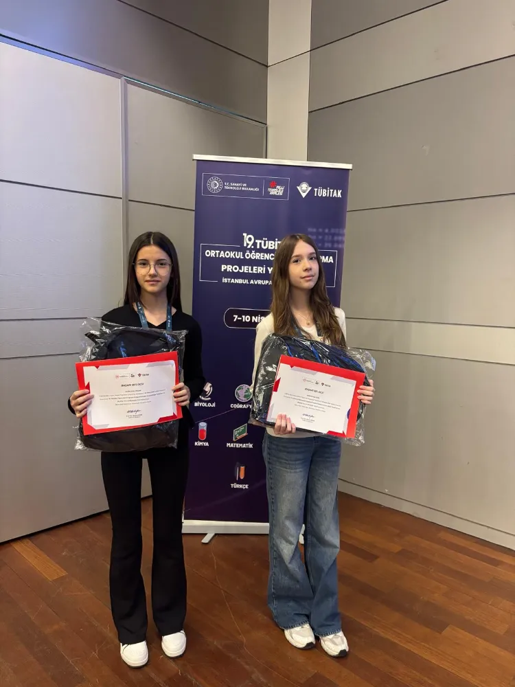 Çerkezköy Bilim ve Sanat Merkezi’nden Buğlem Naz Güre ve Ecrin Duru Kaçar, TÜBİTAK 2204-B Ortaokul Öğrencileri Araştırma Projeleri Yarışması Biyoloji Kategorisi’nde İstanbul Avrupa Bölge 1’incisi oldu. Danışman öğretmen Seher Böğüş, nezaretinde büyük başarıya imza atan Buğlem Naz Güre ve Ecrin Duru Kaçar Çerkezköy Bilim Sanat Merkezi’nin gurur kaynağı oldu.