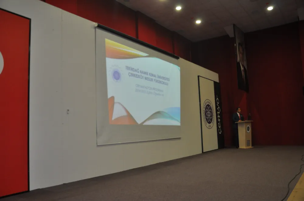 Çerkezköy Meslek Yüksekokulu Konferans Salonu’nda gerçekleştirilen oryantasyon programına öğrencilerin yanısıra, Çerkezköy Meslek Yüksekokulu’nda görev yapan akademik ve idari personel de katıldı.