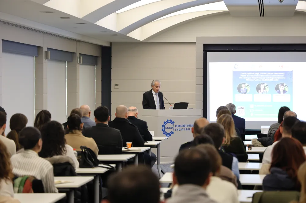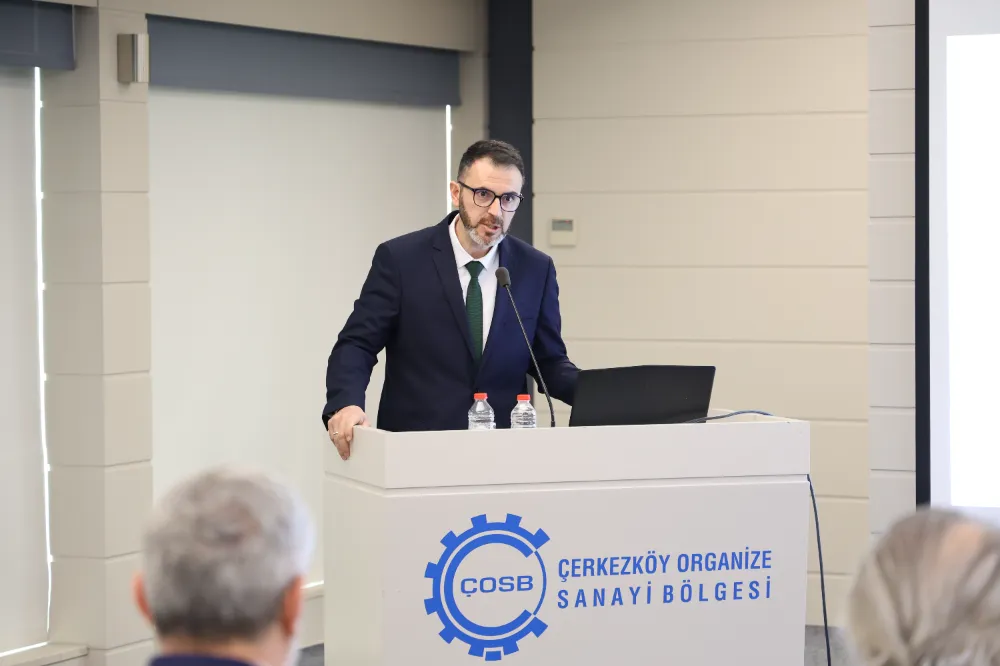Çerkezköy Organize Sanayi Bölgesi (ÇOSB), Avrupa Birliği Yeşil Mutabakatı'nın getirdiği yeni düzenlemeleri ele almak üzere önemli bir panele ev sahipliği yaptı. Sınırda Karbon Düzenleme Mekanizması (SKDM), Emisyon Ticaret Sistemi (ETS) ve Döngüsel Ekonomi mevzuatları uzman konuşmacılar tarafından detaylı bir şekilde katılımcılarla paylaşıldı.