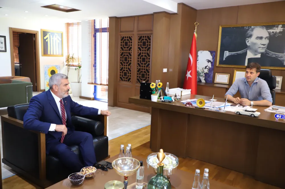 Ziyarette 10 Eylül 2025 tarihinde gerçekleşen 9. Çerkezköy Endüstriyel Fuarı ile ilgili olarak fikir alışverişinde bulundular.